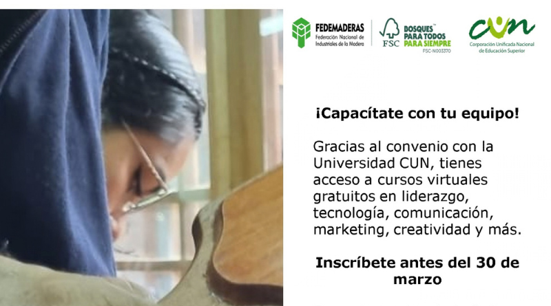 Cursos gratuitos para empresas afiliadas Convenio FEDEMADERAS y CUN