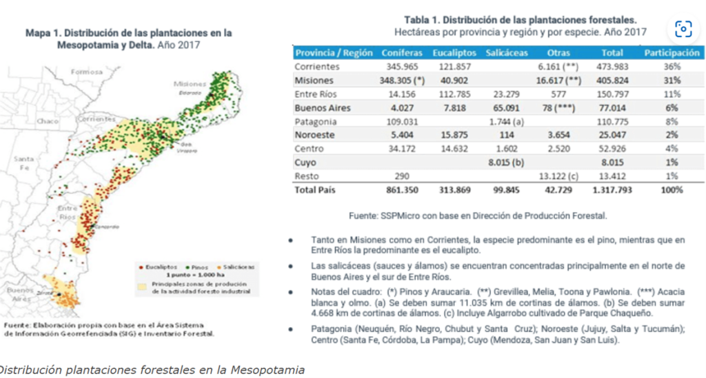 La Argentina cuenta con aproximadamente 1,5 millones de hectáreas de plantaciones, pero además la velocidad de crecimiento es mucho mayor que la de los países que son grandes productores forestales como los nórdicos, lo que implica un uso subóptimo del recurso forestal.