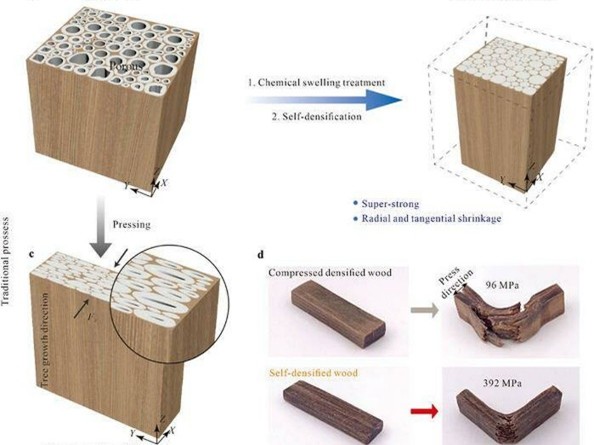 El proceso creado por los investigadores chinos hace que la madera adquiera unas propiedades excepcionales. Los investigadores han observado una resistencia a la tracción, a la flexión y al impacto muy superior a la madera natural y a la madera comprimida lograda con los métodos tradicionales.