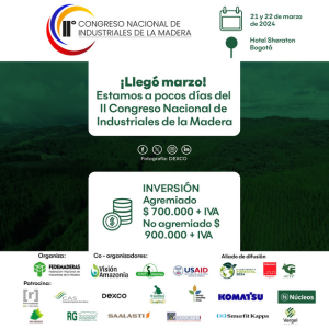 Consejo Colombiano de la Construcción Sostenible: invita a agremiados de la red forestal y de la madera a participar en la “Segunda edición de la publicación trianual del Estado de la Construcción Sostenible en Colombia”. Mayor información aquí |